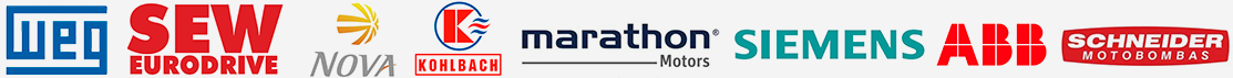 Trabalhamos com diversas marcas de motores incluindo: Weg, Eberle Mercosul, Hercules, Siemens, Marathon, SEW Eurodrive entre outras.