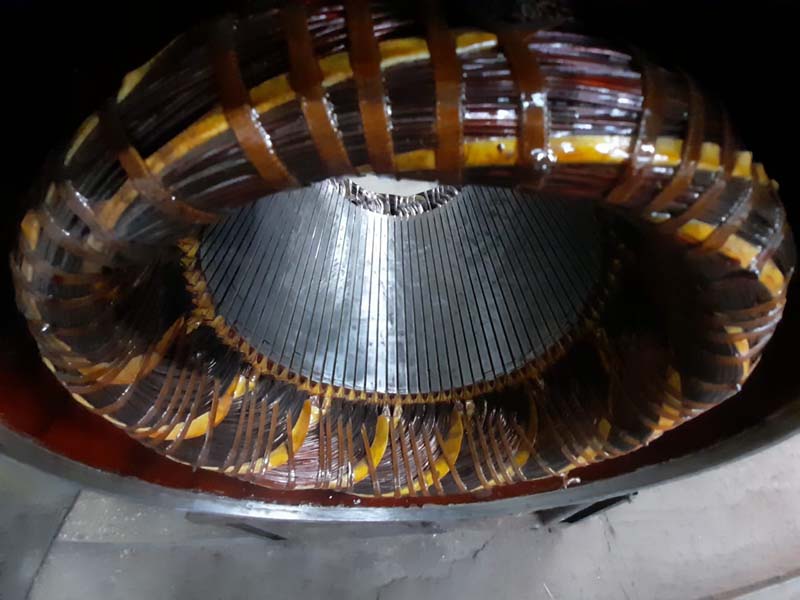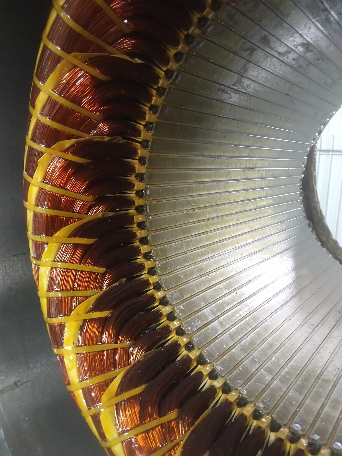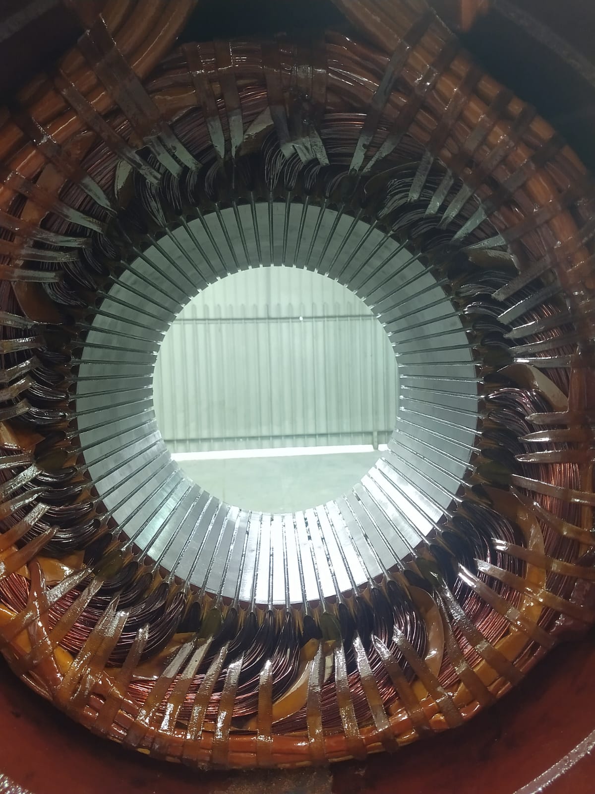 - Impregnação interna do estator por imersão com verniz e secagem em estufa classe F (155°C) ou superior;
